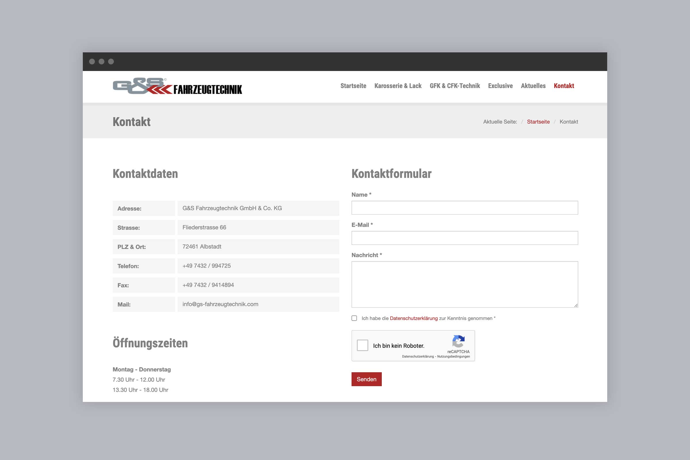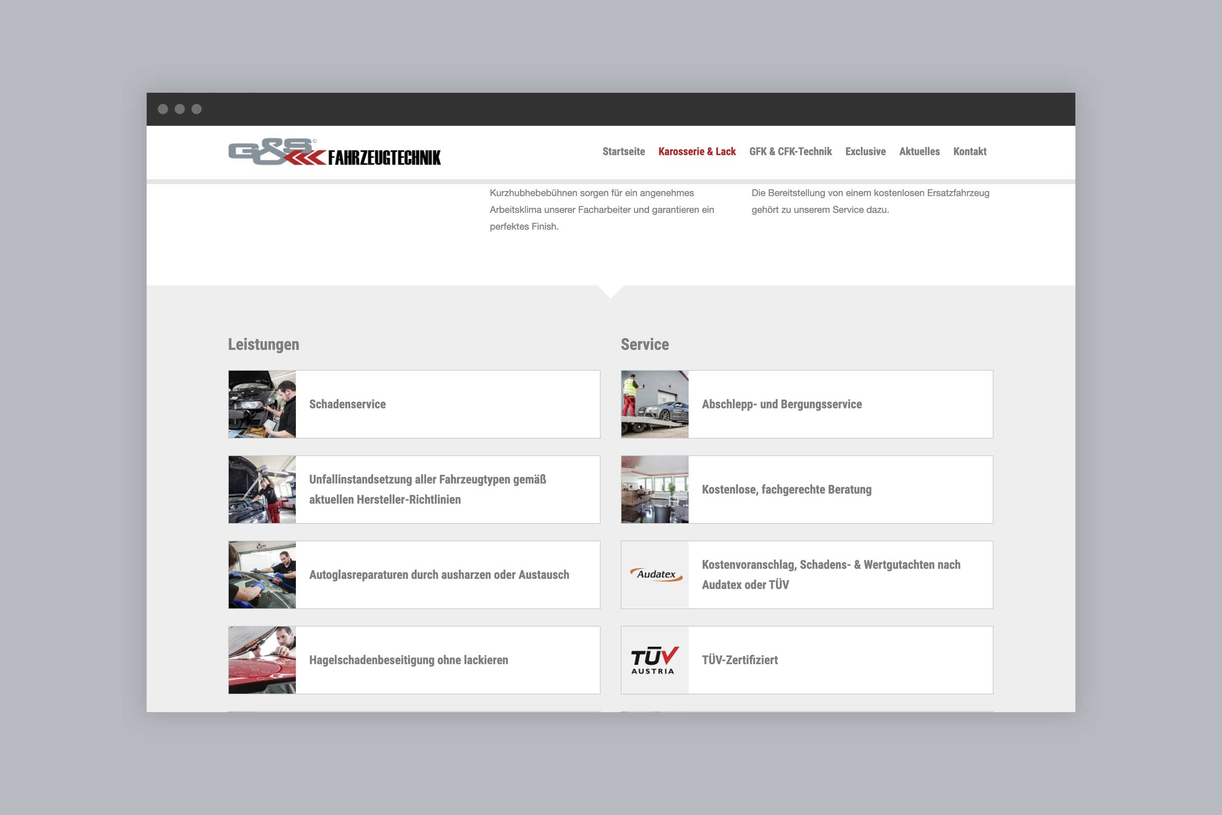 Übersichtliche Website für G&S Fahrzeugtechnik.