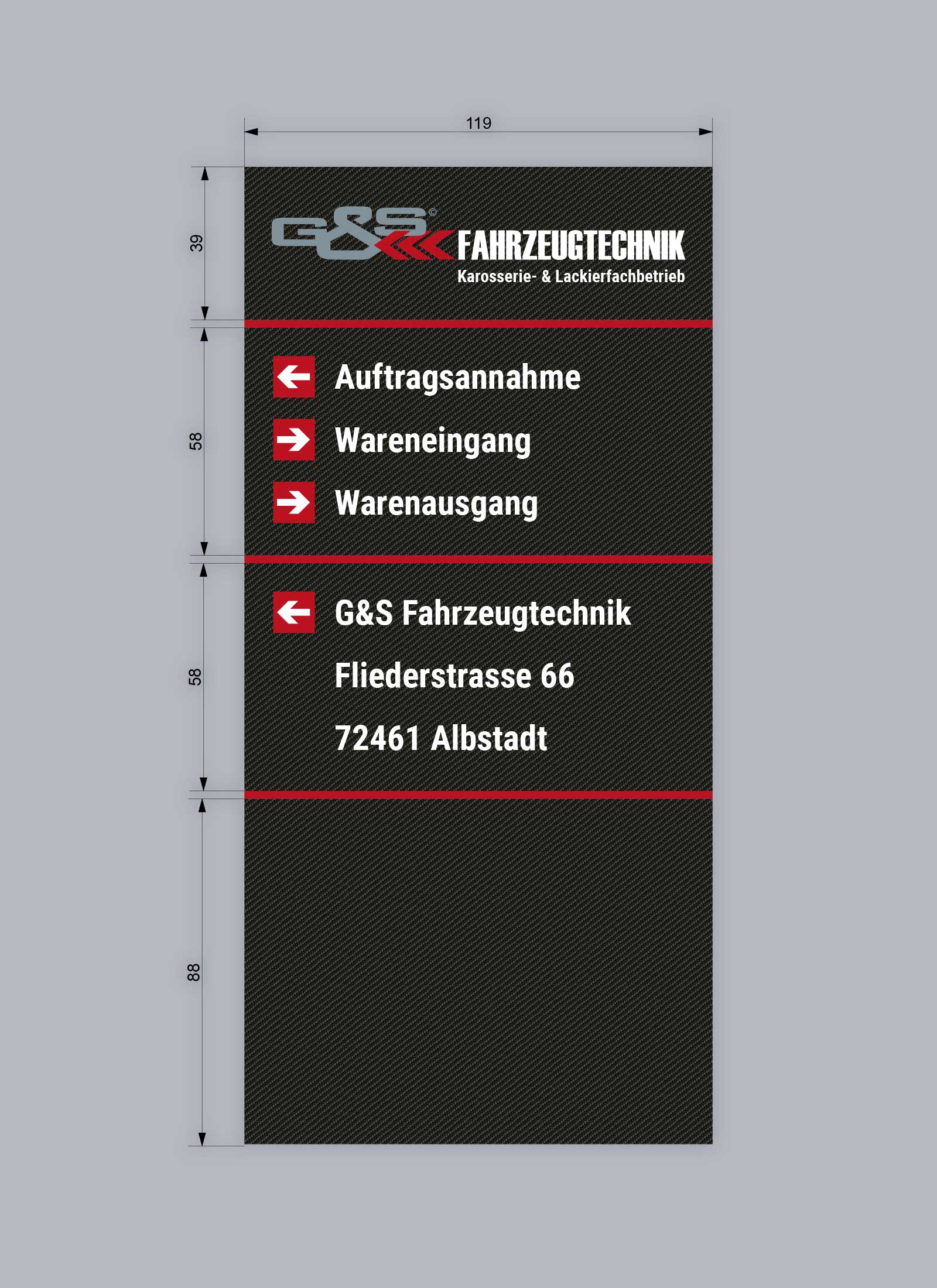 Werbepylon für den Standort Albstadt.