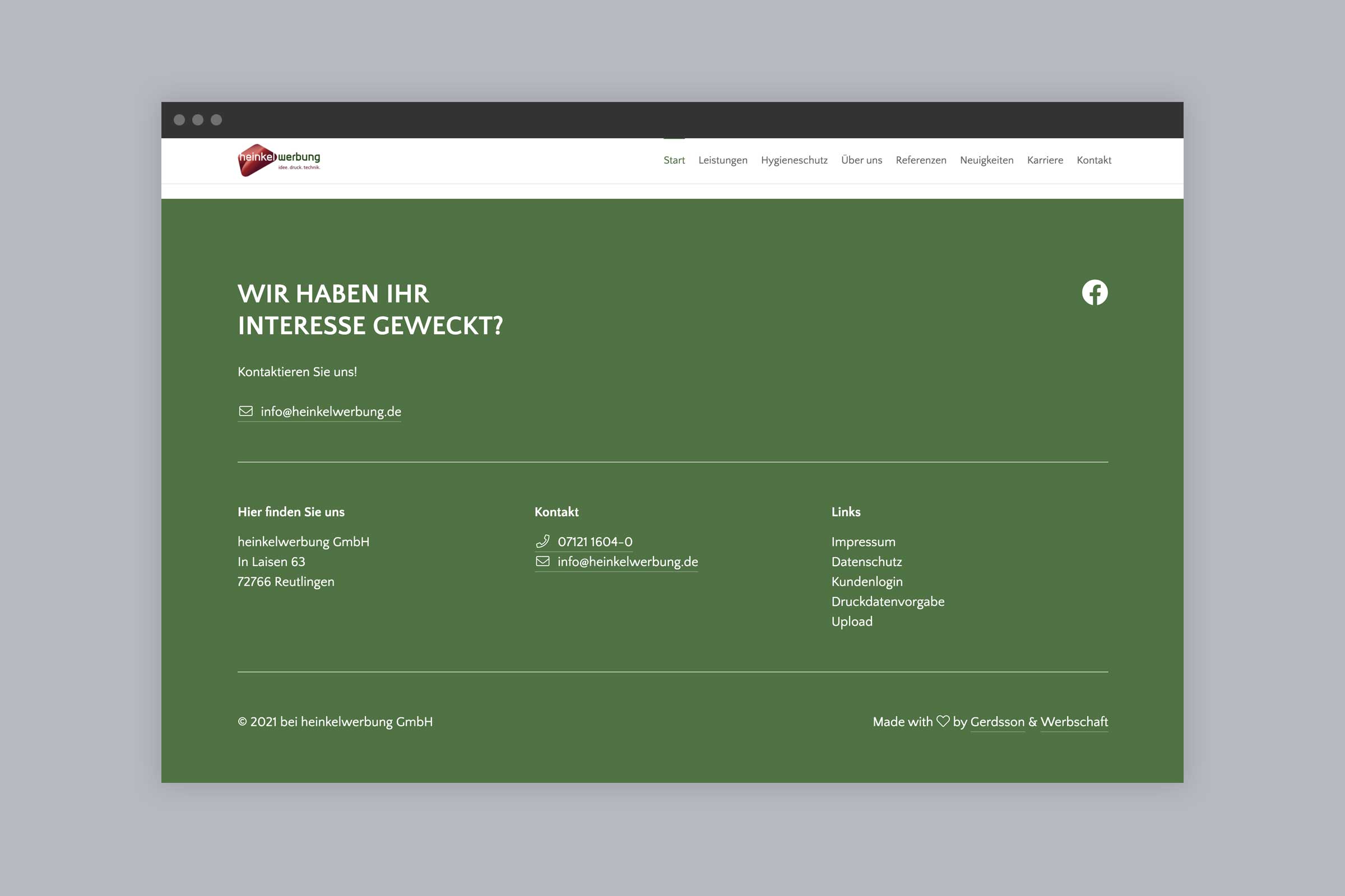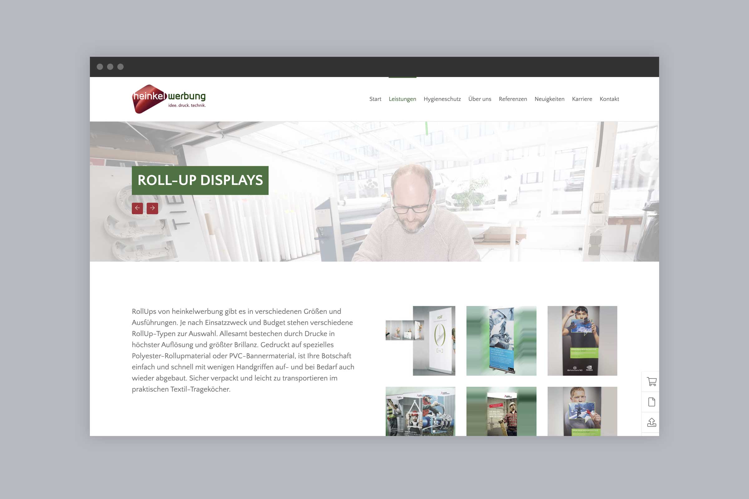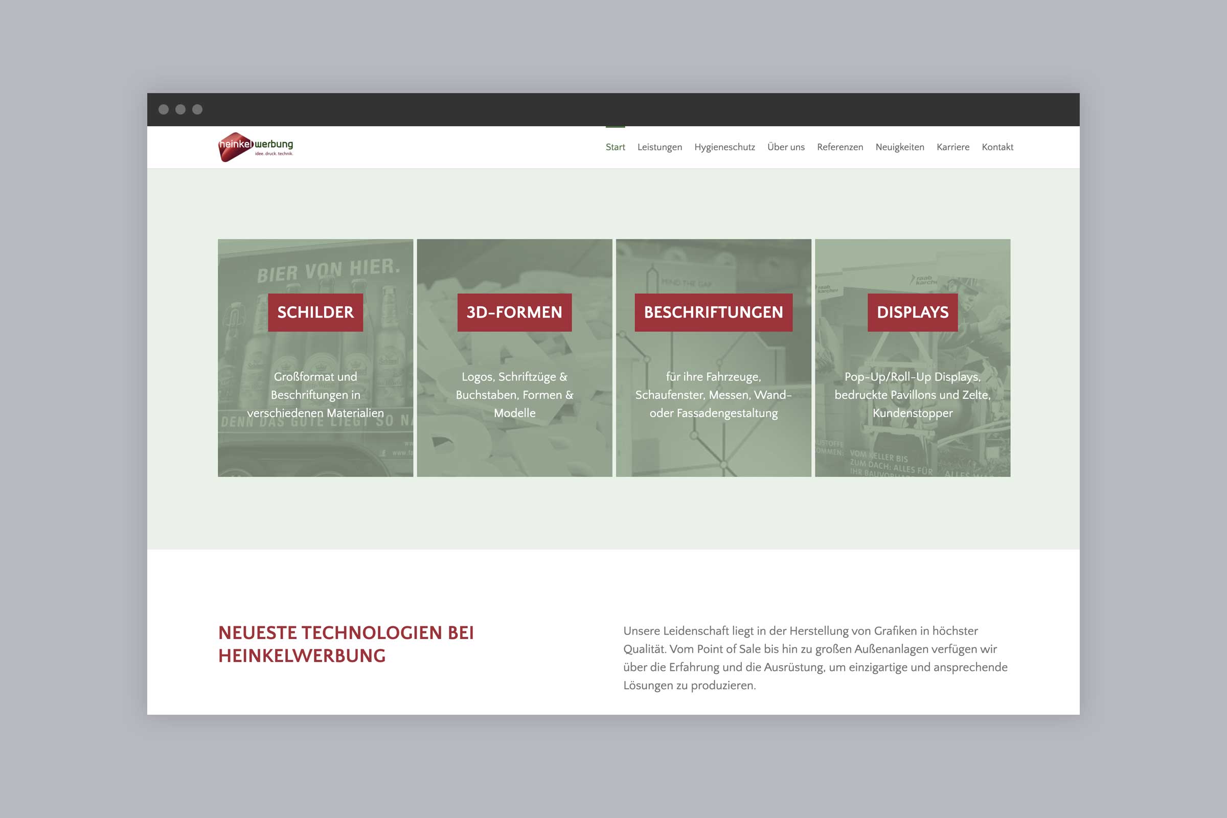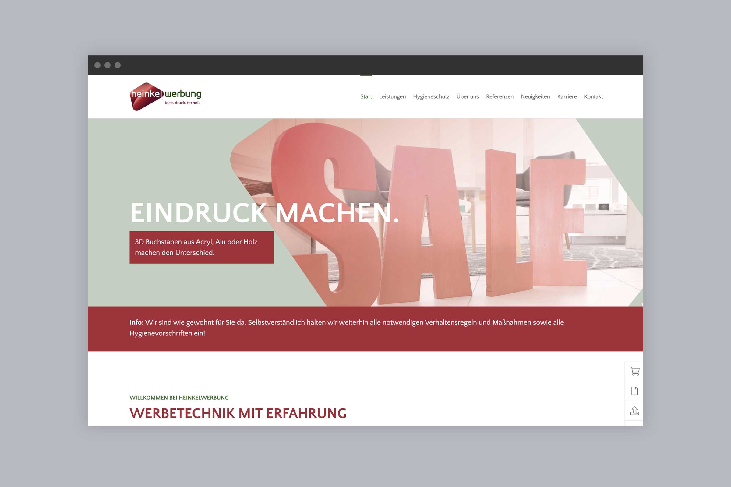 Seitdem Oliver Kehle die Geschäftsleitung der heinkelwerbung übernommen hat betreuen wir den Werbetechniker aus Reutlingen im Bereich Website und Onlineshop. Im Jahr 2020 wurde der komplette Auftritt überarbeitet und die Präsenz des Unternehmens im Internet wurde komplett neu gestaltet.
