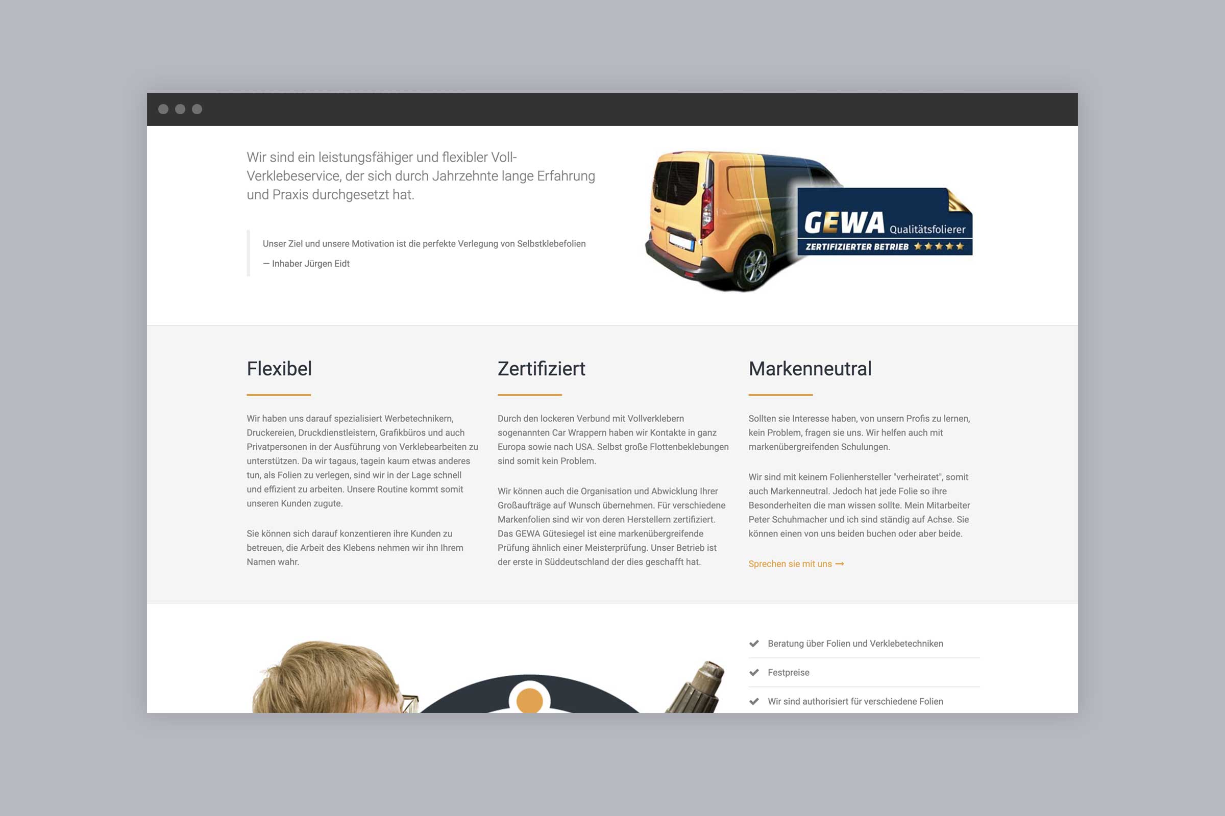 Seit fast 10 Jahren betreuen wir den Verklebeservice Eidt und sein Team im Bereich Website und Pflege. Die Jahrelange Zusammenarbeit freut uns sehr.