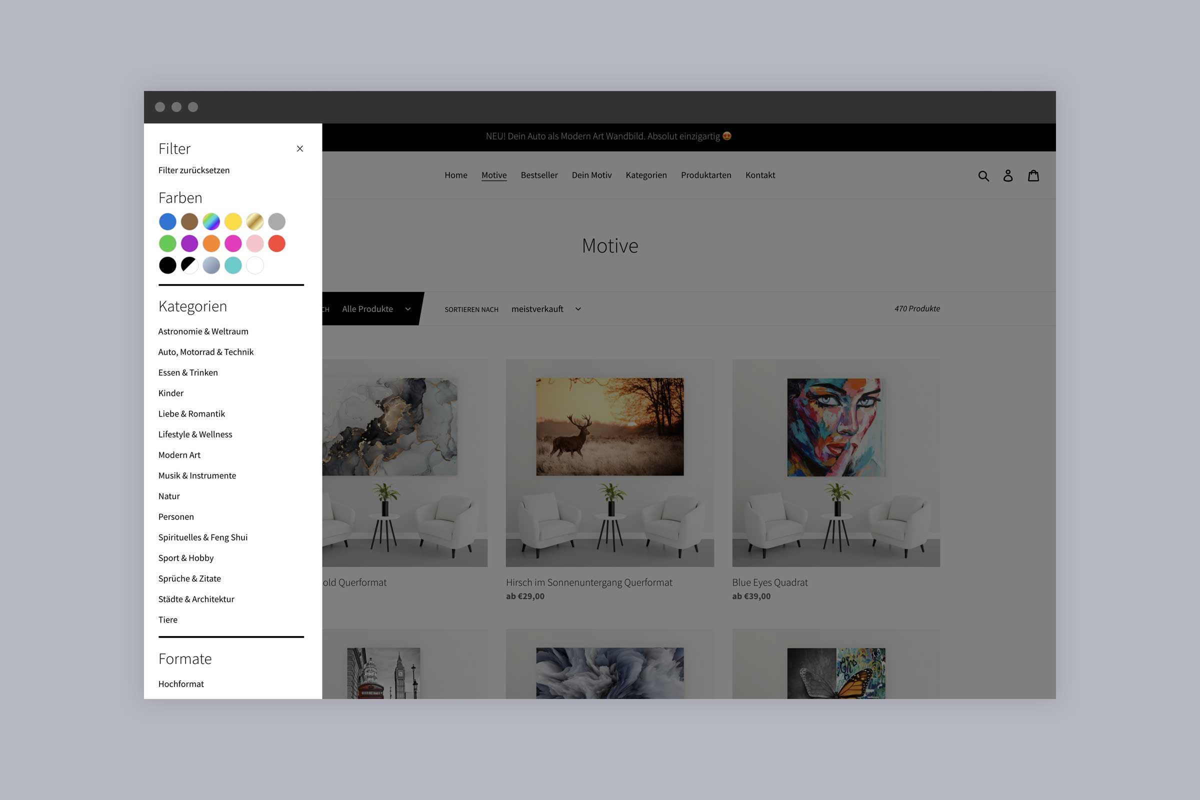 Einfache Filtermöglichkeit auf den Kategorieseiten, komplette Eigenentwicklung.